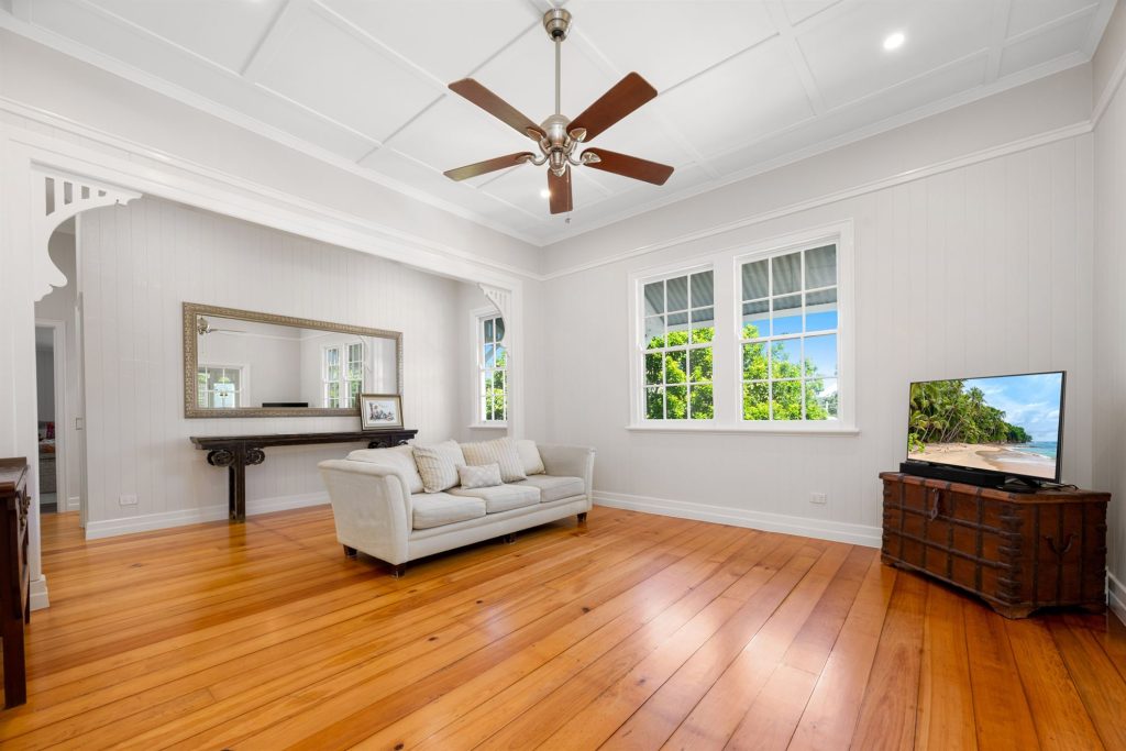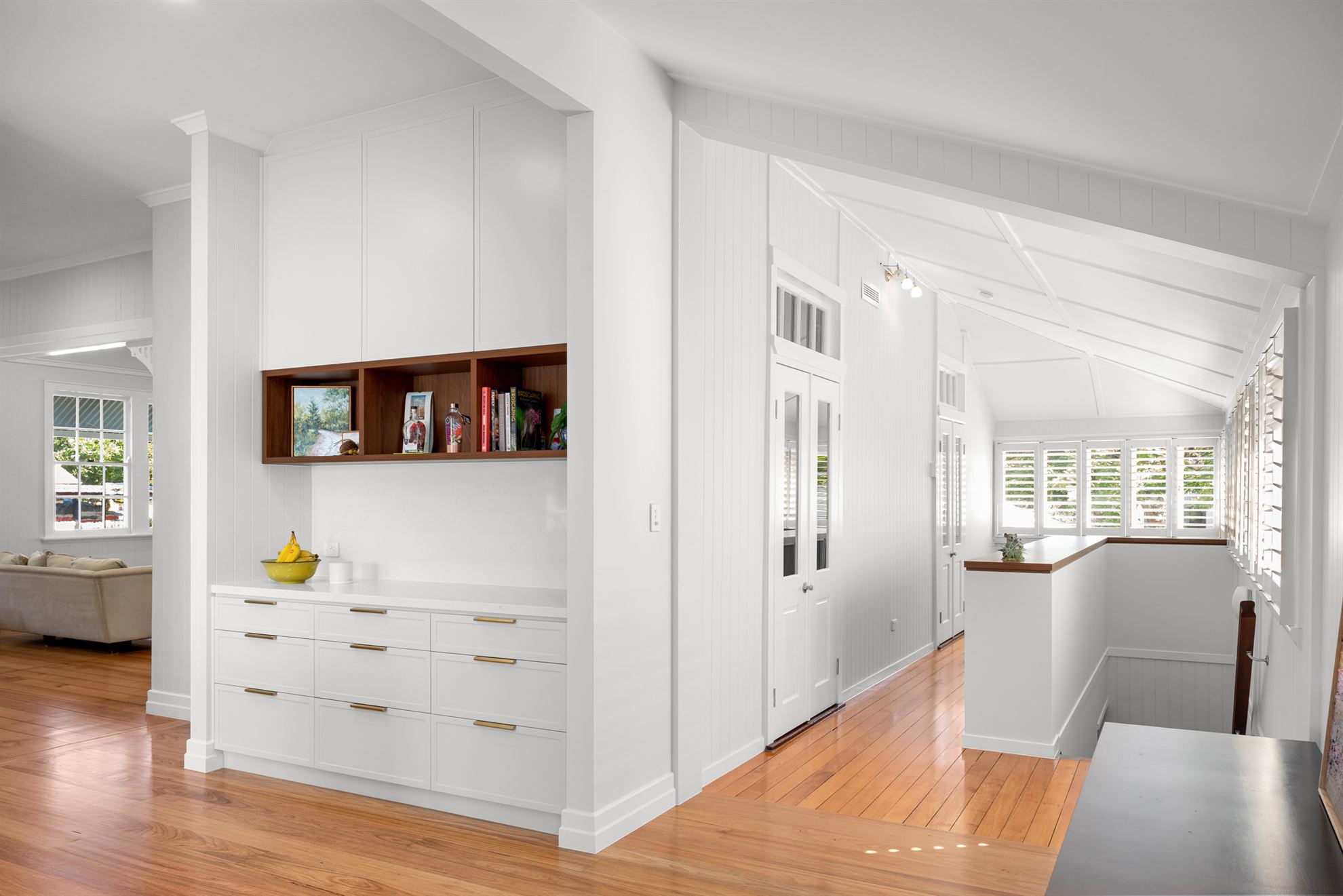 This beautifully restored and extended Holland Park residence blends timeless Queenslander charm with modern sophistication. The renovation pays tribute to the home's original character—preserving period features like stained glass, VJ walls, and ornate timberwork—while introducing bright, contemporary elements that enhance daily living. From the striking front elevation to the warm, sunlit interiors, every detail has been thoughtfully crafted.