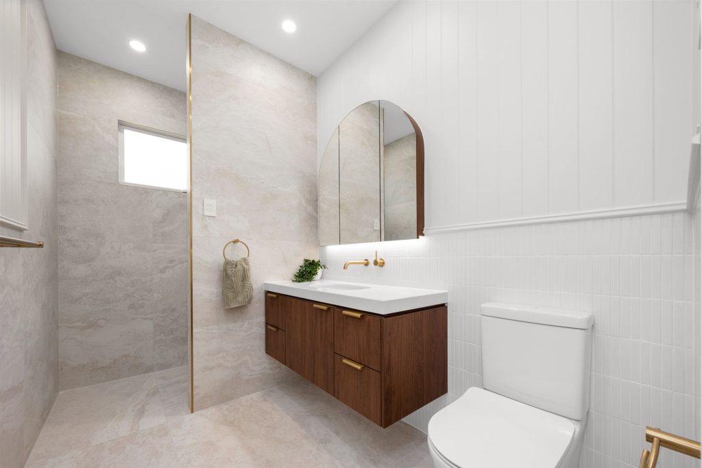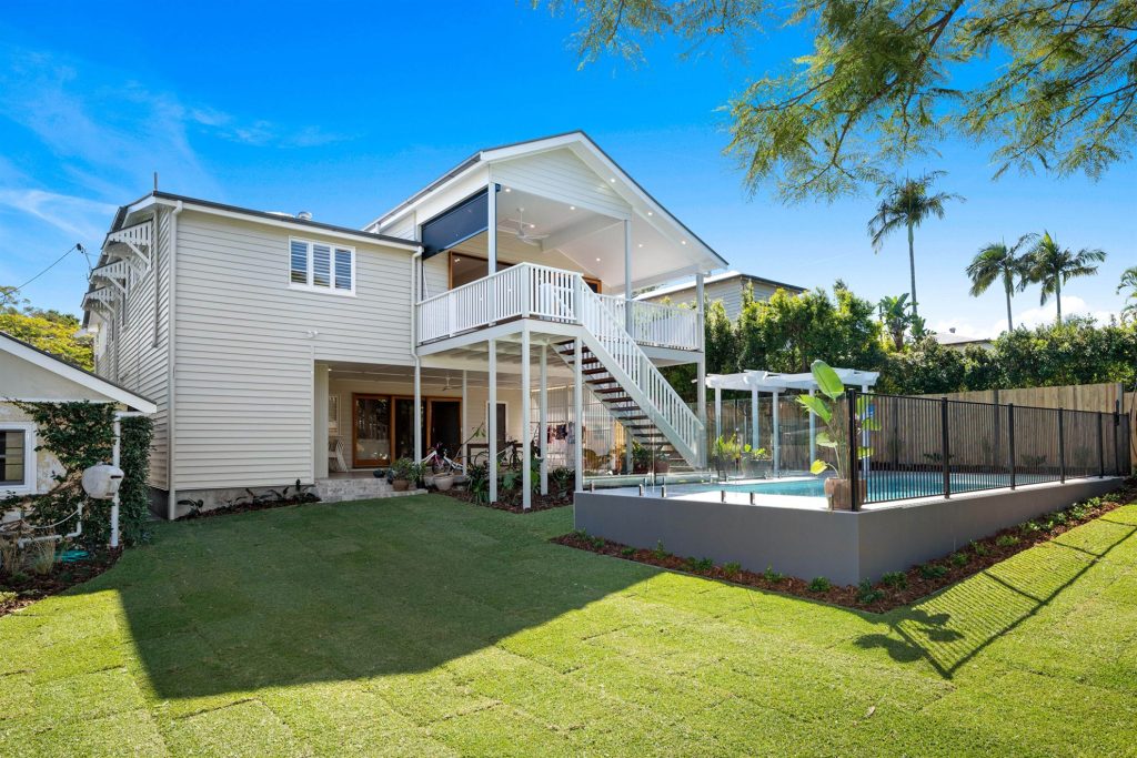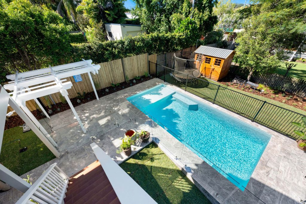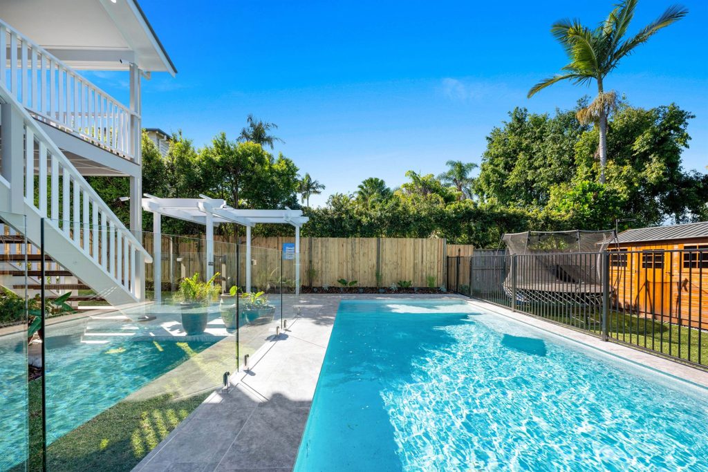 Outside, the transformation continues with a beautifully landscaped yard and a sparkling new pool framed by glass fencing and a relaxing alfresco area. A custom-built staircase connects the indoor spaces to the backyard haven, creating a family-friendly layout that flows effortlessly. This renovation is a perfect example of how heritage homes can be elevated for modern lifestyles without losing their soul.